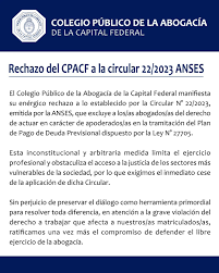 El 2 de junio de 2023 el Juzgado Federal N° 2 de Corrientes dictó resolución en la causa «INCIDENTE DE MEDIDA CAUTELAR – EN AUTOS “Colegio Público de Abogados 1ra. Circ. Corrientes c/ Anses s/ Amparo Ley 16.986” (Expte. N°1591/2023), ordenando a la ANSeS, como medida cautelar, que «Suspenda la aplicación de la Circular Nº22/23 de fecha 08/05/2023 en cuanto dispone “… firmados individualmente por la persona titular…” y en su último párrafo “…requieran firma por parte de la persona solicitante…” quedando facultados los abogados apoderados a solicitar la iniciación del trámite y acogimiento al Plan de Deuda Previsional creado por Ley Nº 27.705, debiendo contener el instrumento de procura facultades especificas a tal fin, todo ello bajo su responsabilidad«.